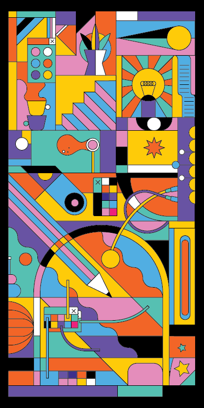 Introducing "Creative Kaleidoscope" - a vibrant geometric illustration representing the dynamic nature of the creative process. This captivating artwork showcases a harmonious blend of colors, shapes, and patterns, evoking joy and inspiration. Own "Creative Kaleidoscope" and infuse your space or projects with the limitless possibilities of creativity.