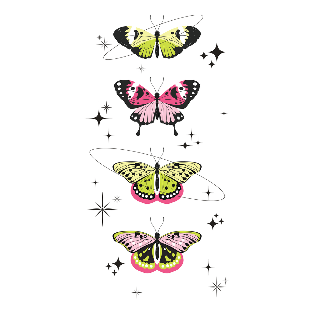 Introducing "Retro Flutter" - a vibrant Y2K-inspired illustration for sale, featuring four enchanting butterflies. With bold colors and playful patterns, it captures the whimsy of the early 2000s. Perfect as an art print or for merchandise, "Retro Flutter" adds a touch of nostalgia and vibrancy to any space. Own this captivating artwork today and embrace its joyful energy.